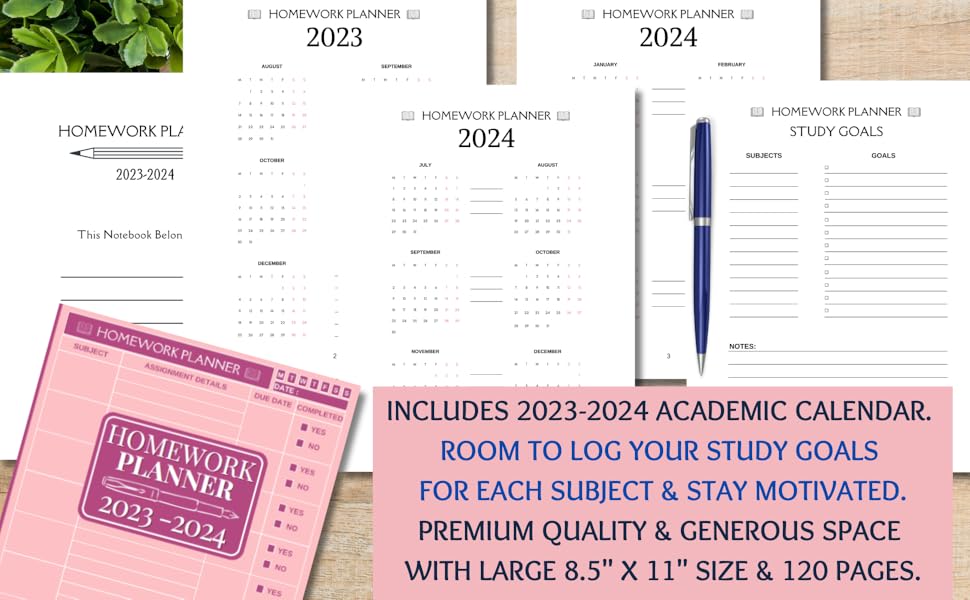 Homework Planner For Students 2023 2024: Assignment Tracking